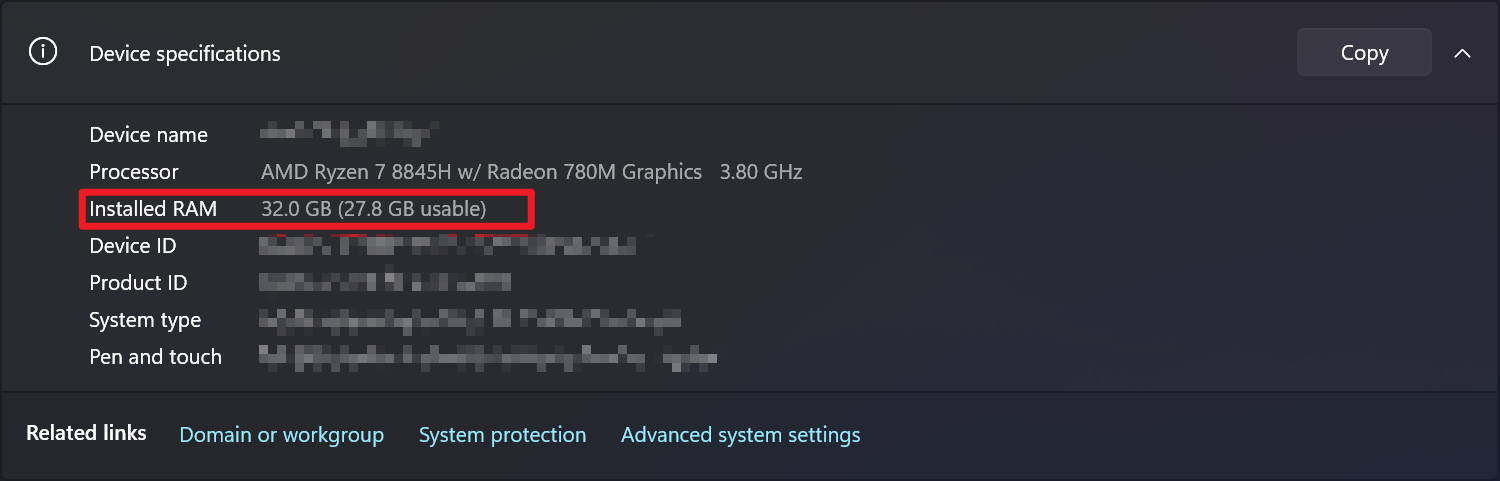 - Processor: AMD Ryzen 7 8845H w/ Radeon 780M Graphics