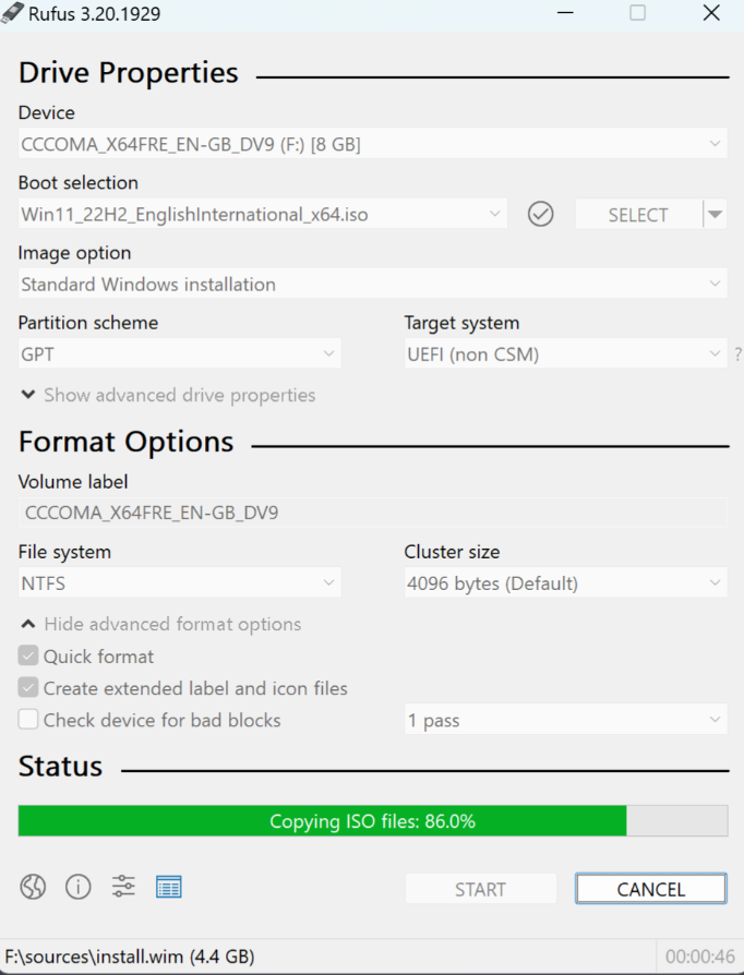 如果你的 U 盘不支持大文件写入,大概率是由于 U 盘的 FS 格式为 FAT32 等,该格式无法存入 4GB 大小以上的单文件,解决方法就是将其文件系统格式化为 NTFS